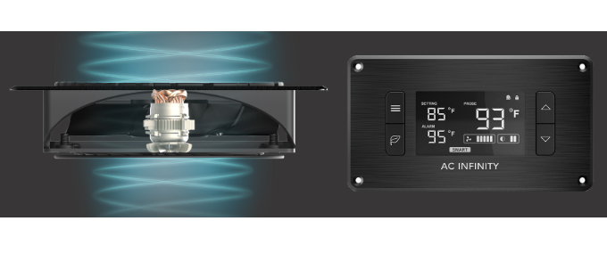 - Optional hardware cabinet digital LCD controller with automated thermostat and fan speed control. Additional S-Series fans can be daisy chained for added cooling.