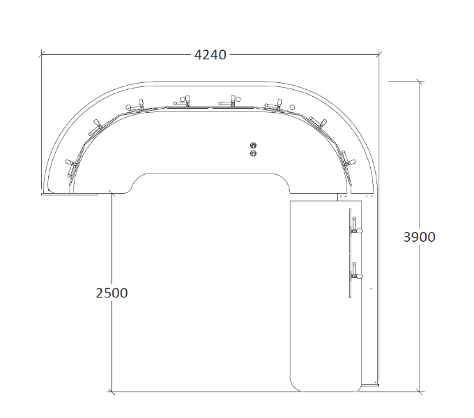 - Optional customised hardware cabinet to accommodate additional equipment with optional PC or 19inch rack pull out drawers. - Optional cabinet lighting.