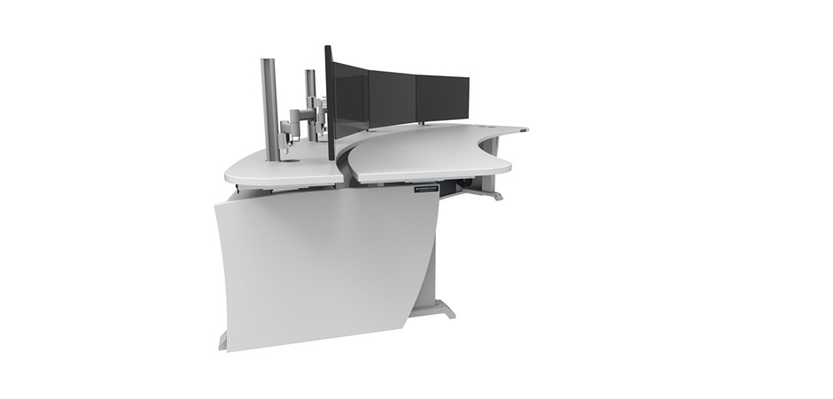 - 1 x DPT flush mount control panels for raising and lowering front work surface and 1 x DPT control panel for raising and lowering independent rear monitor surface (three memory settings per surface).