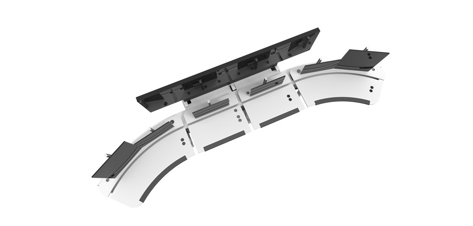 - Rock solid frame made from an aluminium anodized extrusion (also available in white or black powder coated finish). - Electric height adjustment at the touch of a button. - Lifting system made by Danish based global leader. - 8 x DL12 lifting columns for adjusting the front work surface height. - 8 x DL12 lifting columns for adjusting the independent rear monitor surface height. - 3 x DL12 lifting columns for adjusting the independent monitor wall surface. - DL12 lifting columns feature the PIEZO hardware based anti-collision technology. This feature prevents material damage to a desk if a collision with a solid object occurs. The PIEZO sensor is integrated in the legs with no visible changes and no extra mounting.