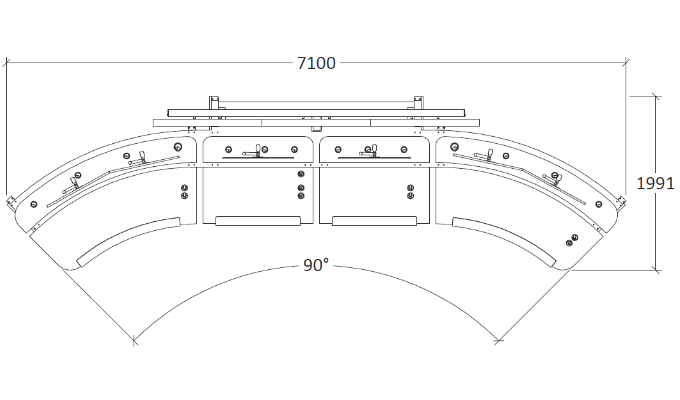 - Cable entry holes with cable covers for neatly routing cables to the work surface. - 5 x built in fans. - 5 x energy chains for safely running data cables from hardware cabinets to rear monitor surfaces. - 5 x energy chains for safely running power cables from hardware cabinets to rear monitor surfaces. - 4 x energy chains for safely running mixed cables from hardware cabinets to front work surfaces.