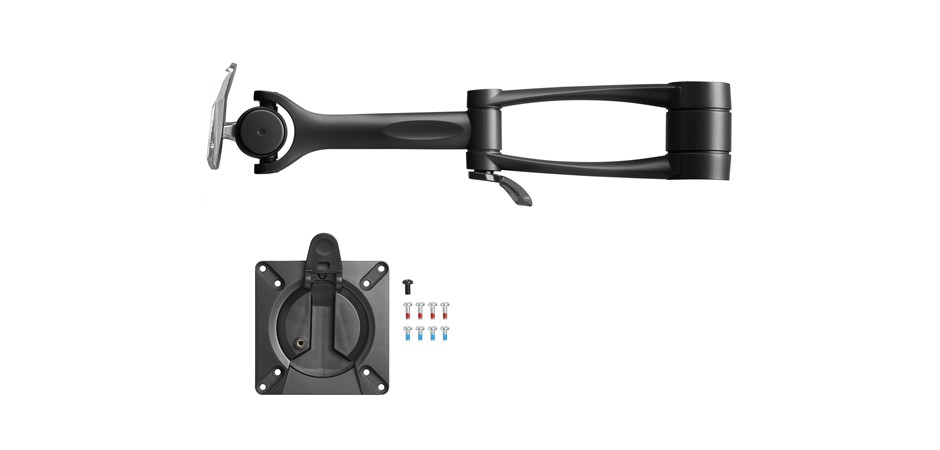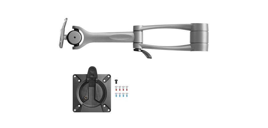 - 2 x adjustable arms with 415mm reach - 1 x 400mm post - 1 x dual arm mount bracket assembly - Bolt through or Desk clamp - Silver finish or Black finish (black finish to order) - Upgradable to carry additional arms - Maximum supported weight, per display: 12kg - VESA mounting hole pattern; 75x75, 100x100 - Height adjustability - Upward and downward tilt adjustment - 90 degree left and 90 degree right pan adjustment - Landscape to portrait screen rotation - Advanced cable management - Quick release mechanism - Material: Steel, Aluminium and Plastic |